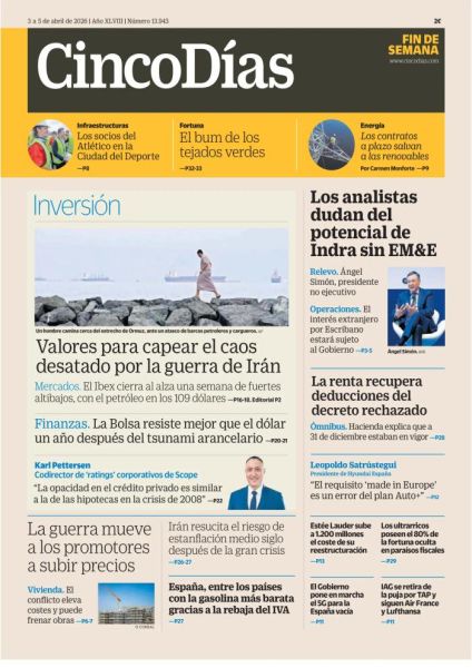 El diario Cinco Días, referente en el mundo empresarial, alcanza más de 64 mil lectores fieles diariamente. El apoyo de los expertos de mayor actualidad en el panorama económico y su condición de decano en el medio aportan a Cinco Días el prestigio y fiabilidad de un diario líder, con una gran solidez en contenidos y opinión.
