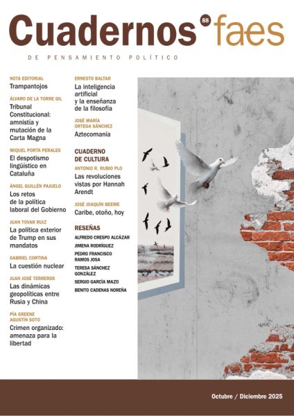 Cuadernos de Pensamiento Político participa en el debate cultural y político de las ideas del centroderecha español y en el análisis de las realidades de nuestras sociedades occidentales para encontrar respuestas adecuadas ante los nuevos retos. Desde el valor principal de la libertad, su propósito es contribuir a pensar una sociedad española mejor, abierta, dinámica, plural y enraizada en principios democráticos constitucionales.